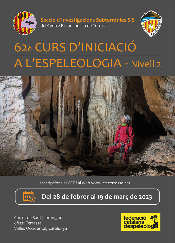 - La inscripció al curs implica l’alta com a soci al Centre Excursionista de Terrassa i a la Secció d’Investigacions Subterrànies per a l’any en curs, en cas que no ho fos anteriorment.