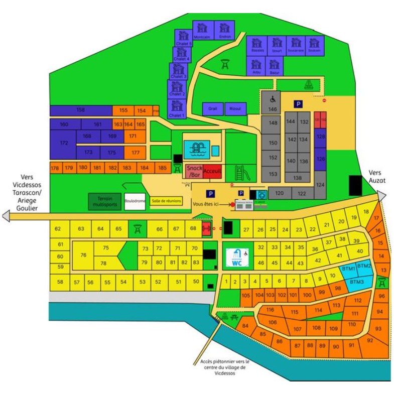 turisme familiar, la natura i un ambient acollidor. - És un càmping familiar, amb 172 parcel·les en 5,5 hectàrees de terreny. El riu Arisge passa pel costat i hi ha un accés des del propi càmping.