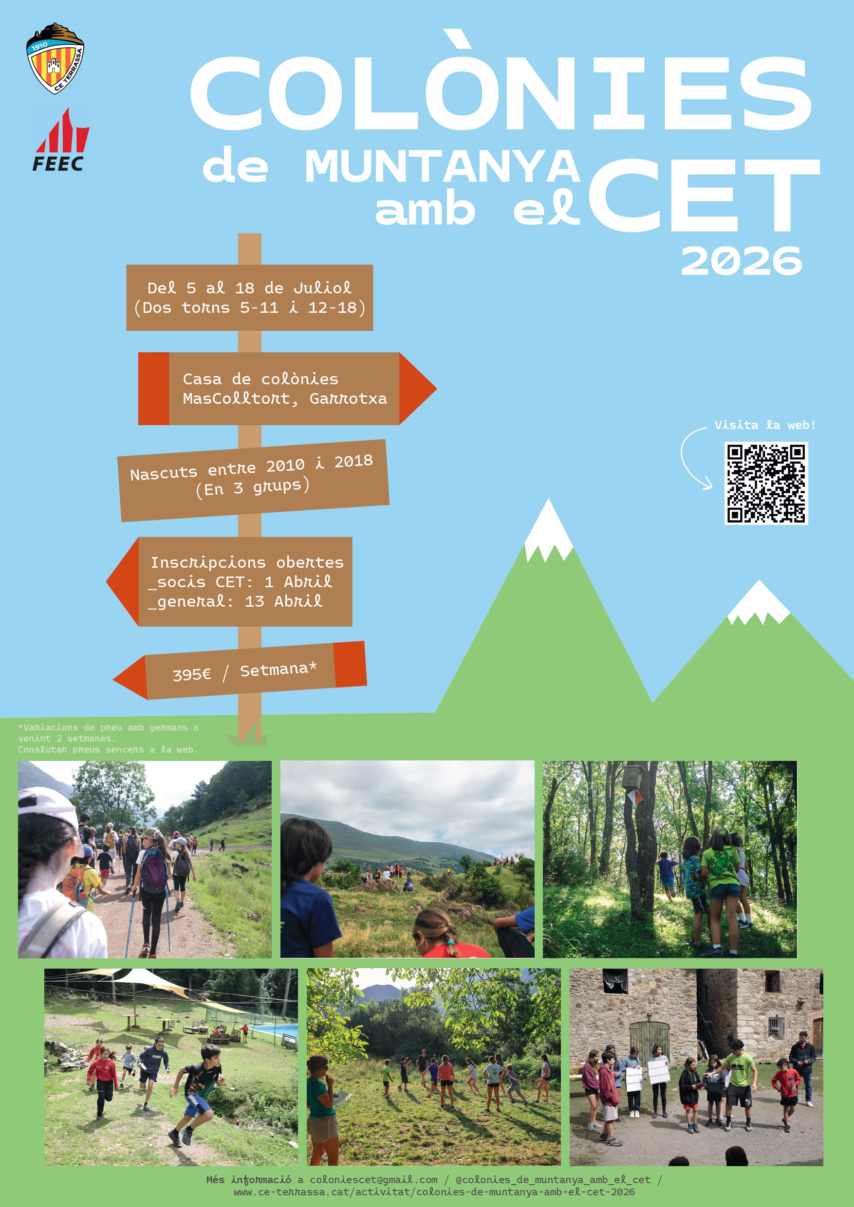 La informació relativa a les reunions prèvies es comunicarà per correu electrònic i a través de la pàgina web del Centre Excursionista de Terrassa. També es compartirà informació mitjançant el compte d’Instagram @colonies_de_muntanya_amb_cet.