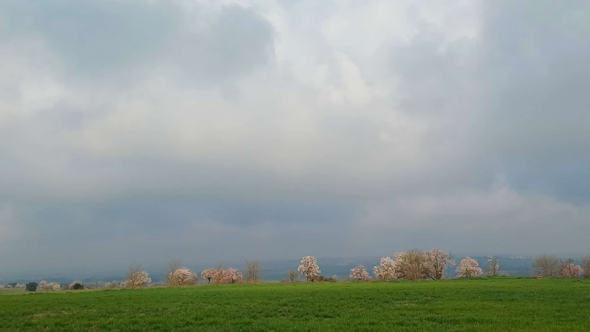 Resseguint el curs del riu, pedalem entre camps oberts d’ametllers que estan esclatant en flor, i tenyeixen el paissatge de blanc I rosa en aquesta època de l’any.
