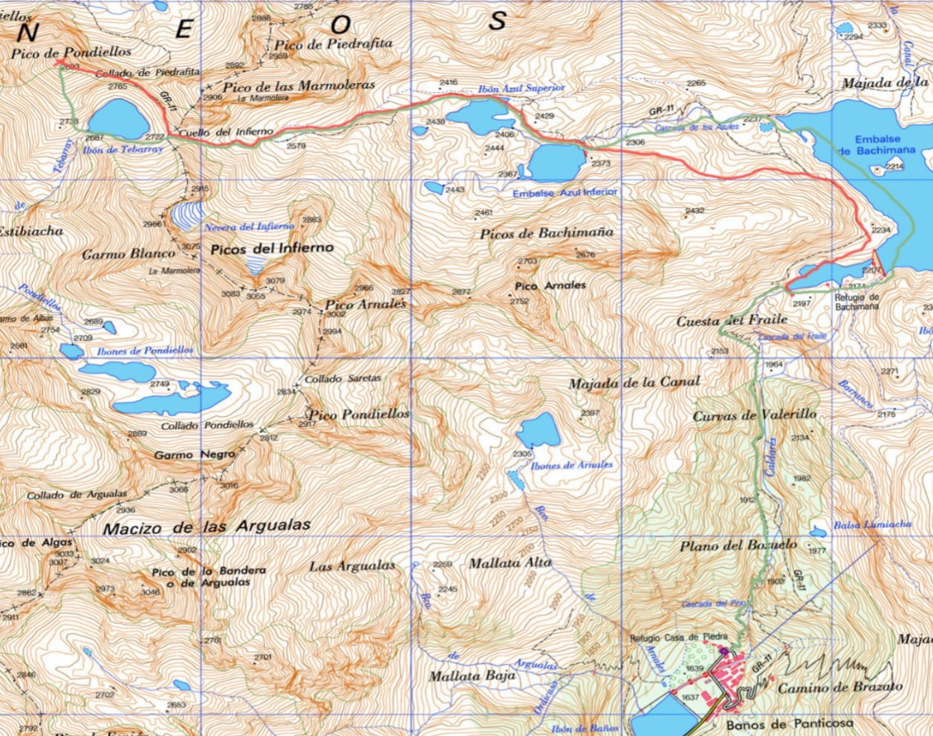 Passarem el llac de Bachimaña i anirem a buscar els ibons blaus, que ens farà pujar molt progressivament pel marge dret dels ibons, quan passem l'últim llac tindrem la pendent fins arribar al coll dels inferns 2775 mts.