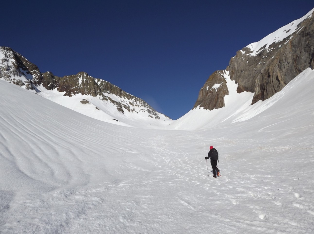 Avançarem pel marge esquerra, per agafar l'aresta i pujar al cim on tindrem i guadirem d'unes vistes espectaculars, us ho puc ben asegurar, sota la mirada dels pics del inferns.