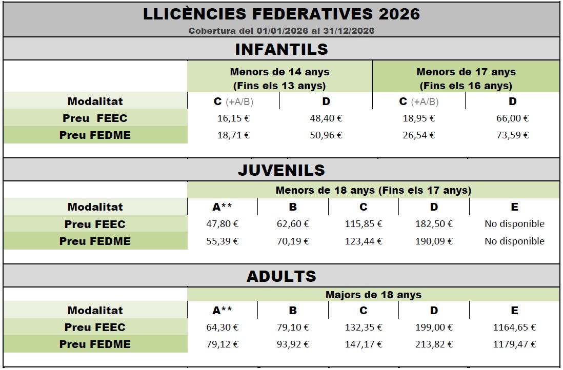 La Federació d’Entitats Excursionistes de Catalunya (FEEC) ha procedit al reajustament i la modificació dels preus de les llicències federatives per a l’últim quadrimestre del 2025.